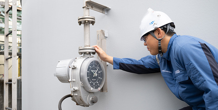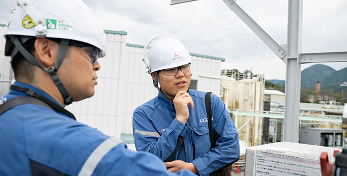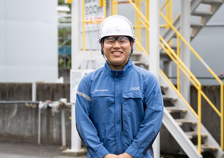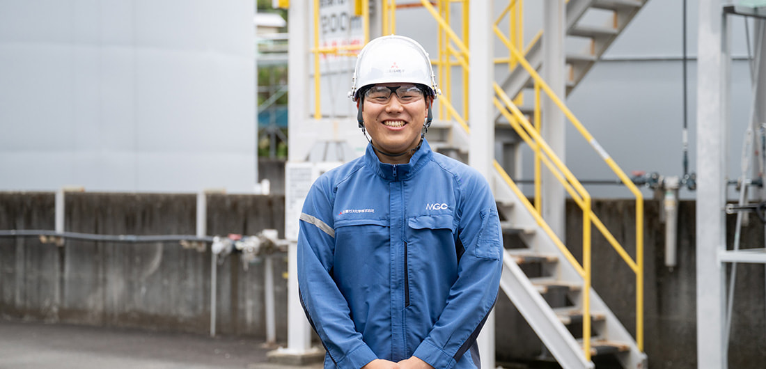 未知の分野に挑戦。私は大学院で機械工学を専攻し、特に資源メーカー寄りのメタンハイドレートの回収技術の開発に関する研究をしていました。その中でMGCとは共同研究という形で関わりを持つ機会に恵まれたのです。化学メーカーであるMGCが、ガス採掘など資源関連事業にも取り組んでいたのは意外でした。MGCの事業の幅広さは自分のキャリアの広がりにつながる。そう感じて入社を決めたのです。しかし、入社後の配属先は希望していた資源関連の部門ではなく半導体向け洗浄液である超純過水を製造する山北工場製造課でした。驚きつつも、まずは自分にとって未知の分野に挑戦する良い機会として、前向きに取り組んでいます。MGCの事業の幅広さを